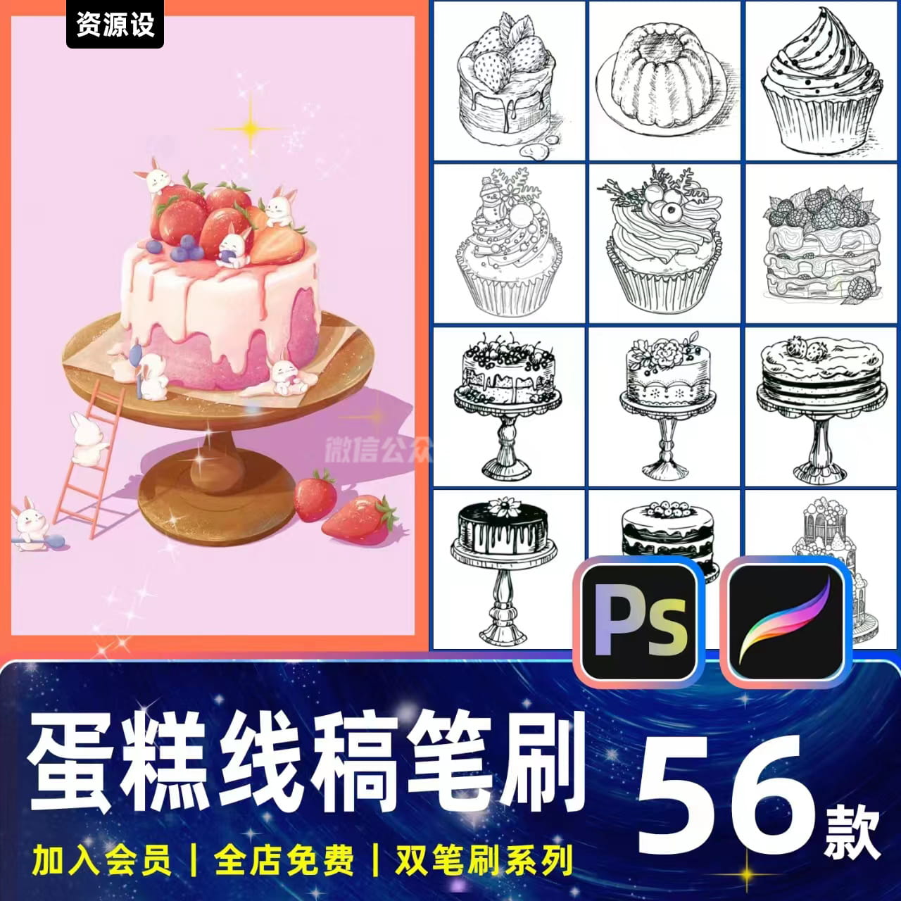 Adobe Fresco 的内置画笔集合极为丰富。您会得到成千上万的精致像素、动态和矢量画笔以满足您的各种需求:插图、草图、动漫、水彩画和油画、照片拼贴画等。您甚至可以将您喜欢的PS画笔和添加到画笔集合中。