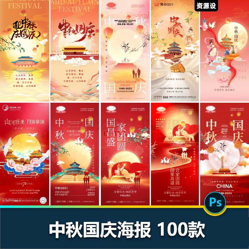 中秋节国庆节双节海报月亮祖国海报活动宣传推广psd设计素材模版【1572期】[1课时]