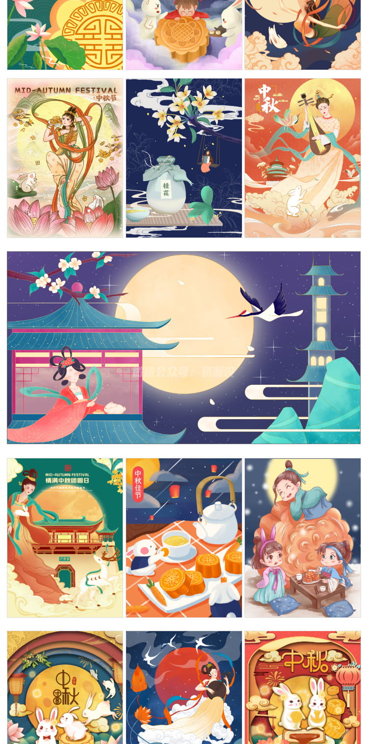 中秋节海报国潮国风背景插画手绘插图嫦娥玉兔月饼PSDAI设计素材【1573期】[1课时]