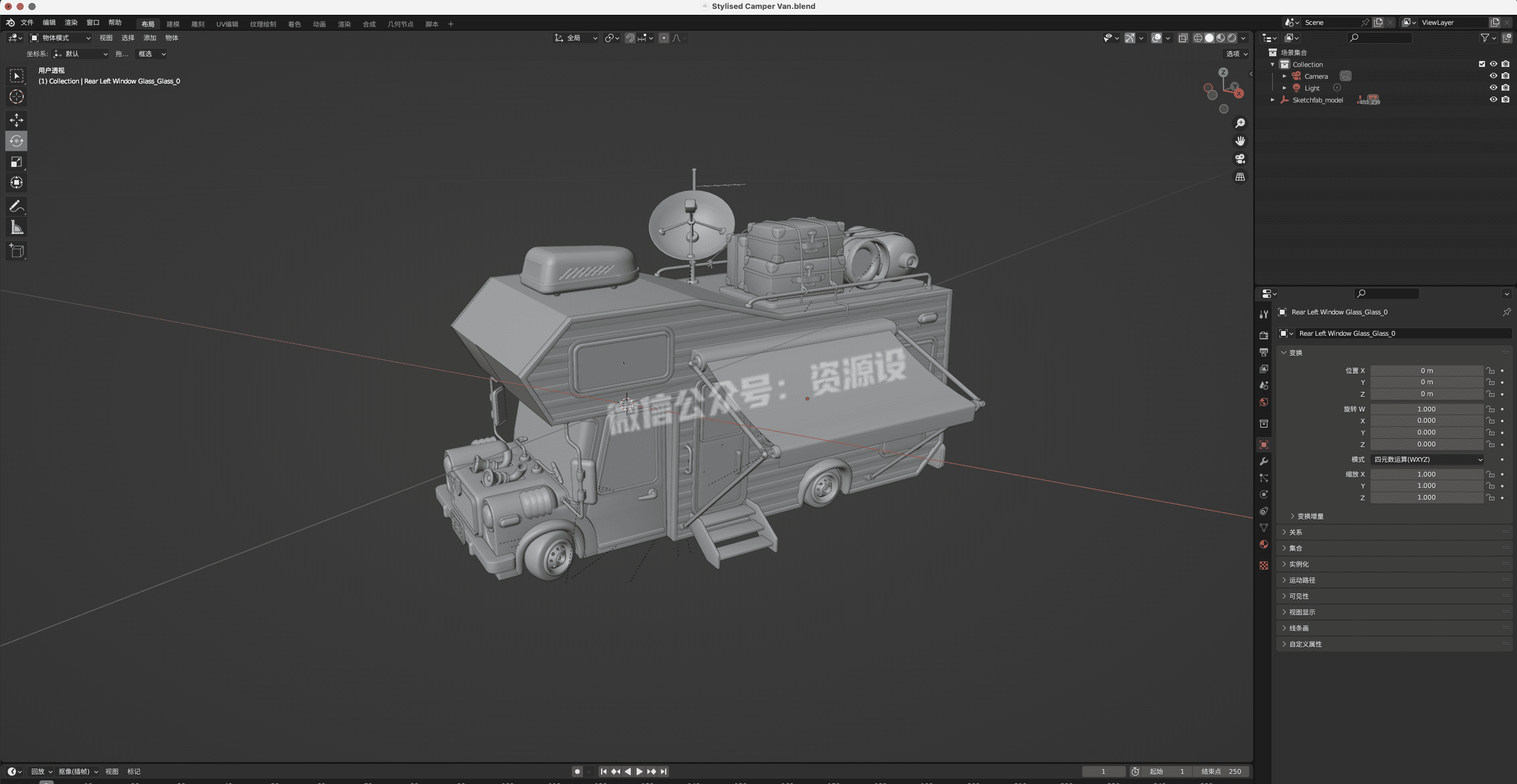 旅游自驾游房车旅行车营地露营3D模型blender/fbx/obj/gltf【2449期】[1课时]