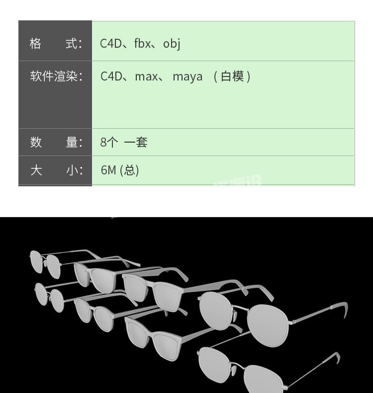 8款C4D太阳眼镜护目3d眼镜obj、fbx模型素材白模【2869期】[1课时]